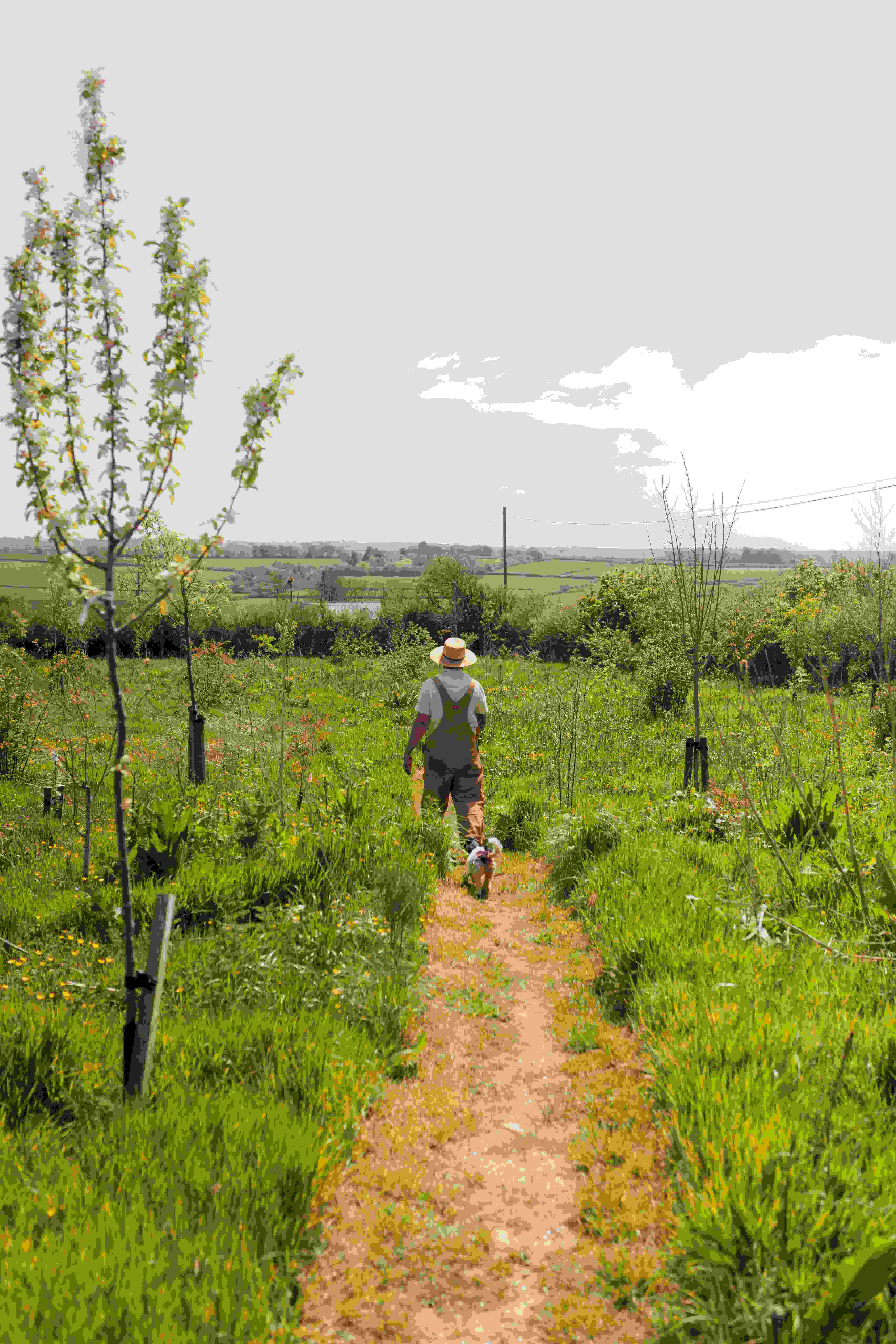 We are trialling several different perennial systems here on the farm, including a commercial Food Forest based on Wouter Van Eck’s work in the Netherlands, centred around efficient picking at a commercial scale, a less formal edible forest garden based on Martin Crawford’s work in South Devon, and several different iterations of Syntropic Agriculture-inspired systems working to translate the ideas of Ernst Gotsch, but also to match the philosophy of Natural Farming to our temperate climate.